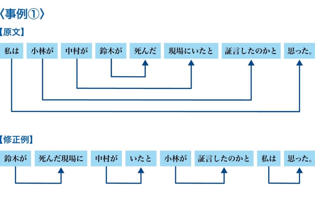 本多氏によれば、文章をわかりやすくする「基本原理」は、修飾・被修飾の関係にある語を直結させ、入れ子を避けることだといいます。