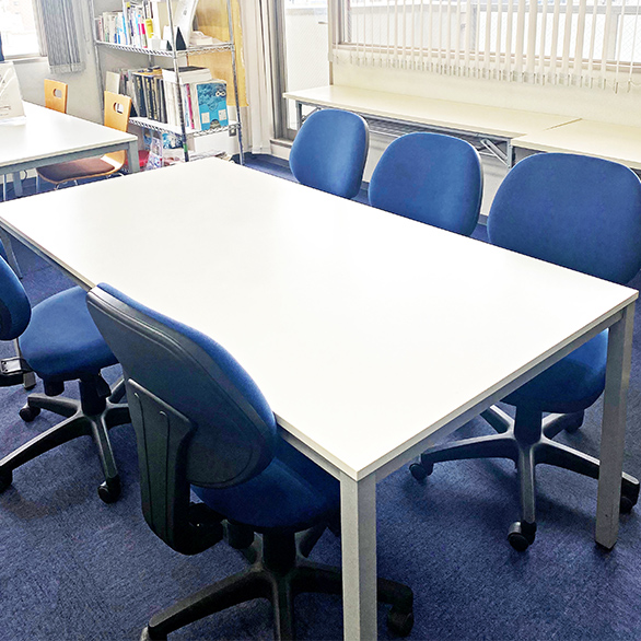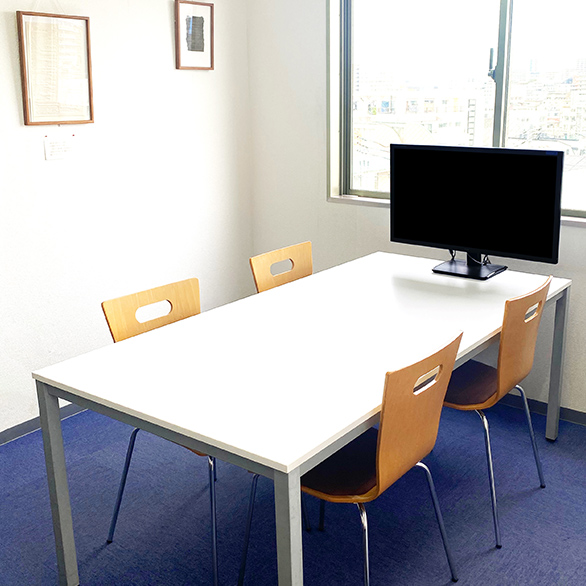ビルの3~5階の3フロアがゼロメガのオフィスで、受付・来客スペースは5階にあります。