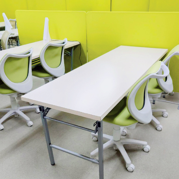 集中しやすく仕切りのついたフリーアドレスデスクからチーム作業用の広々デスクなど